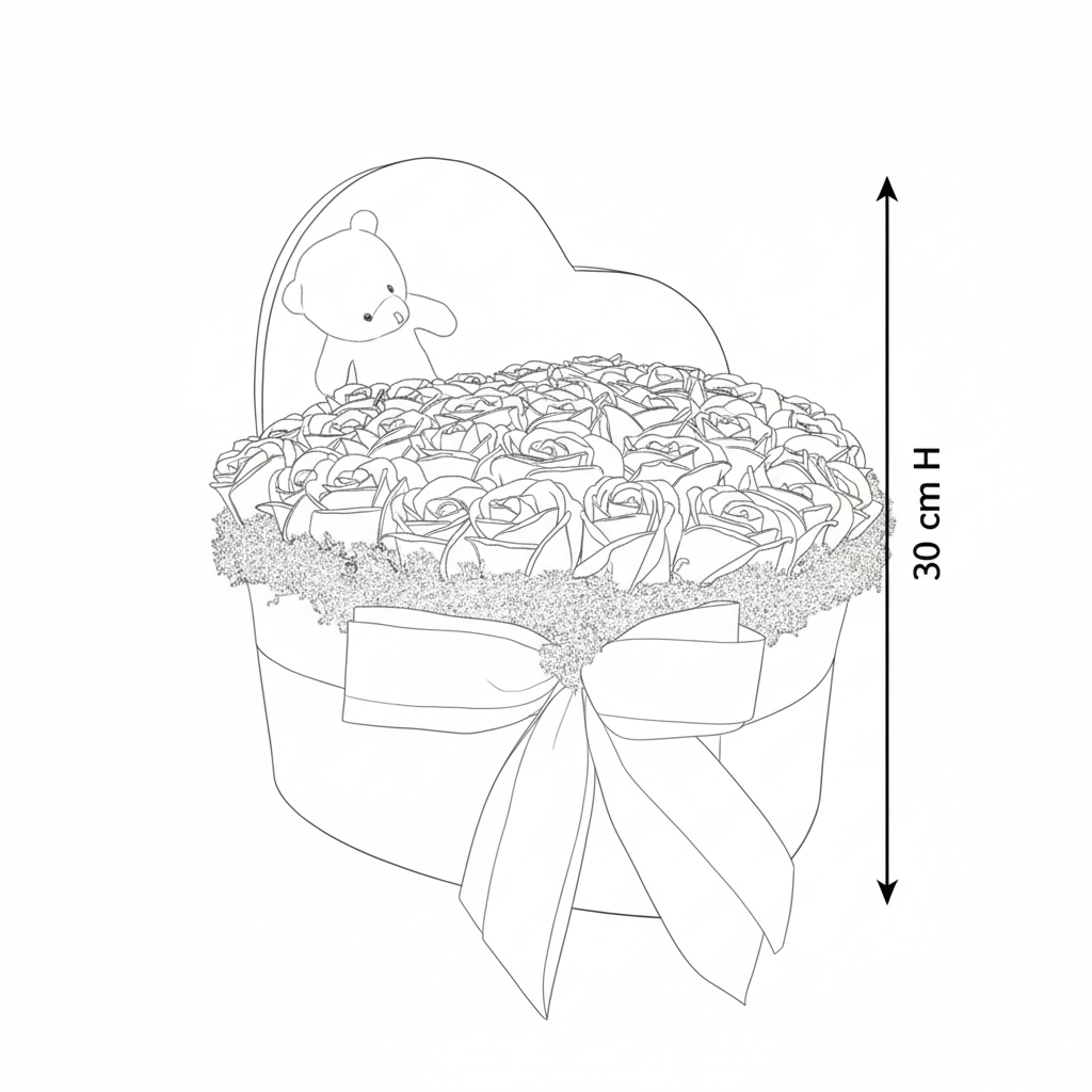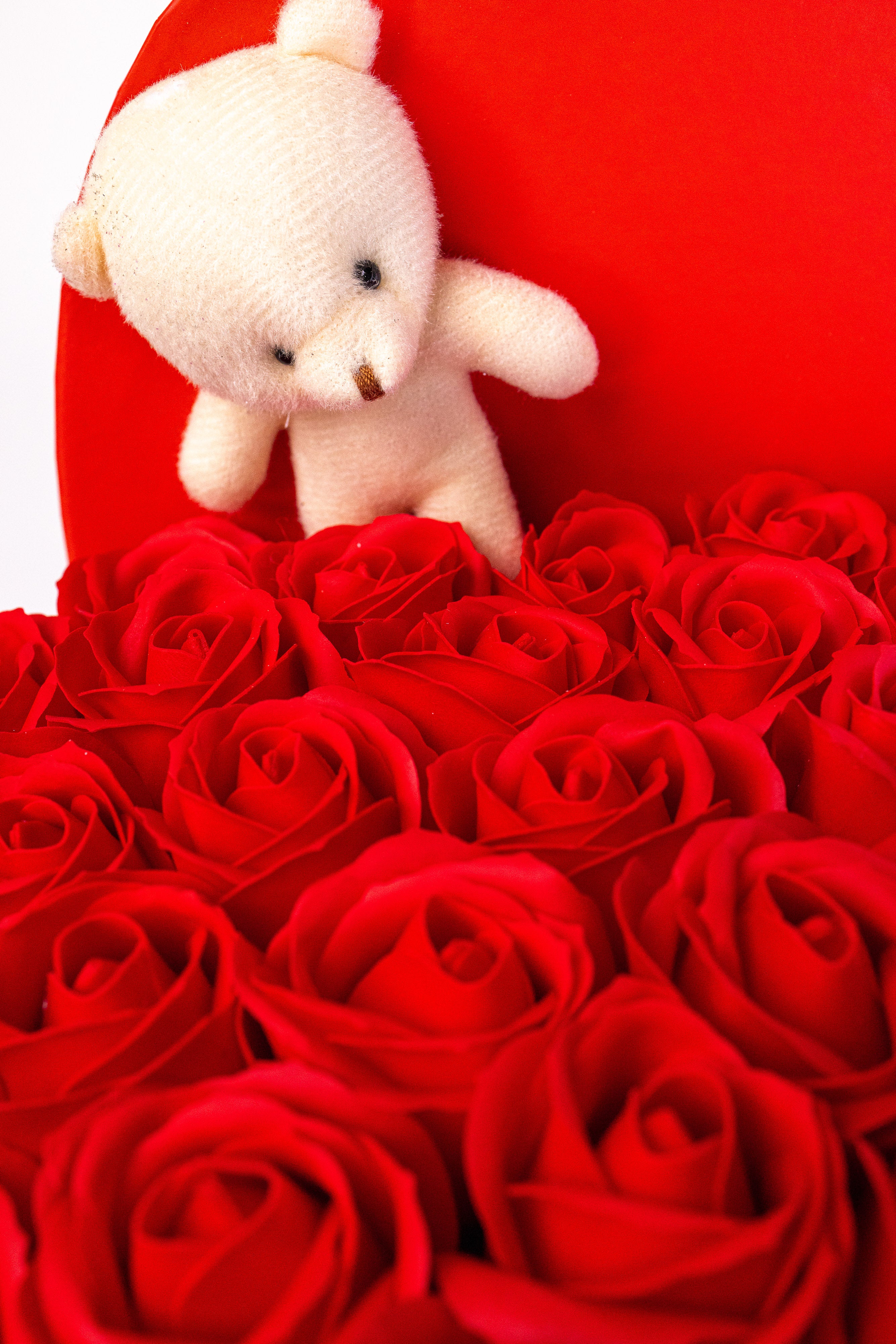 Aranjament Inimă Lux Trandafiri Săpun Roșii, Ursulet Alb