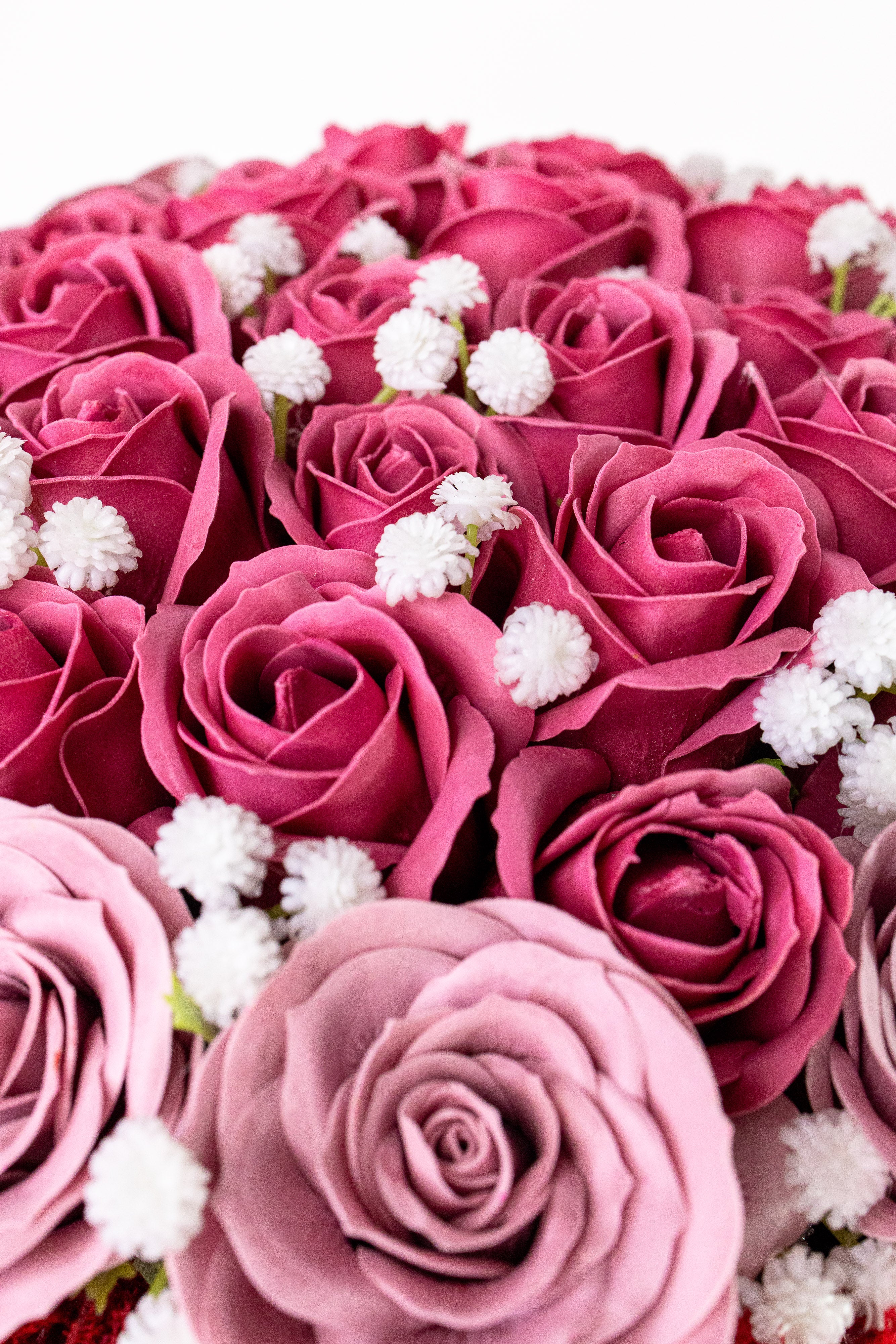 Aranjament Lux Trandafiri Săpun Magenta-Roz, Cutie Roșie