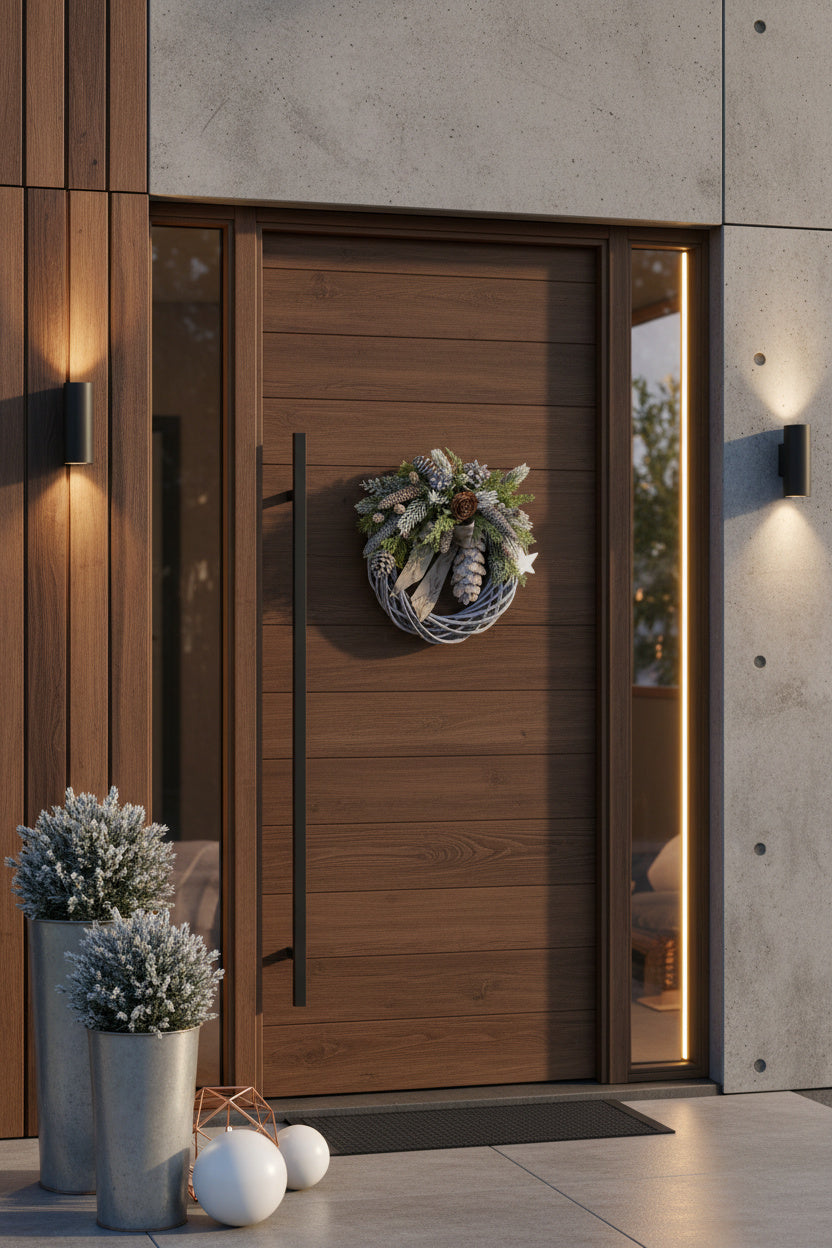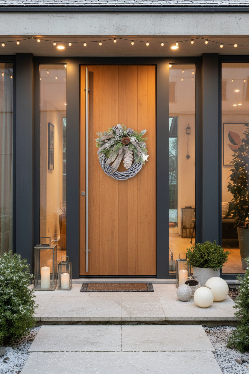 Coroniță Crăciun "Silver Woodland" pe Lemn Împletit Gri